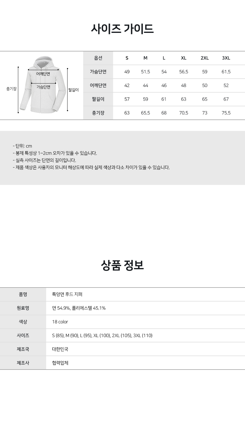 ±¸¼º Èĵå ÁöÆÛ Ƽ¼ÅÃ÷ 1Àå Á¦Ç°±Ô°Ý S(85), M(90), L(95), XL(100), 2XL(105) // 3XL(110) »çÀÌÁî´Â º°µµÆÇ¸Å