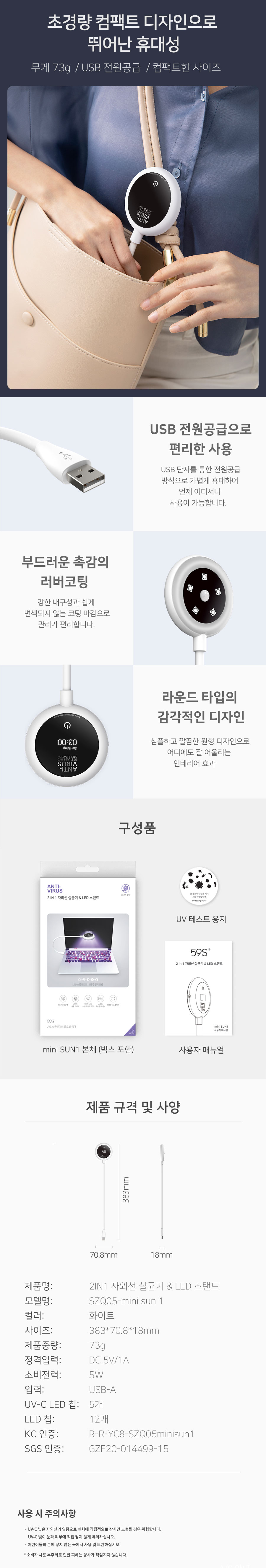 ÈÞ´ë¿ë »ì±Õ·¥ÇÁ UVC»ì±Õ±â 59S, LED½ºÅĵå Minisun1